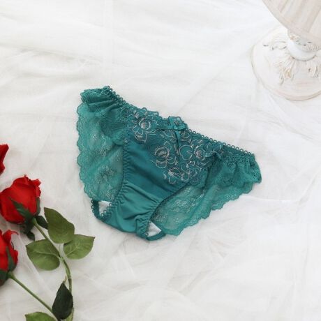 また、後身生地は総レース仕様でヒップを美しく飾り、中央にもアップリケをあしらい、雰囲気をより引き立ててくれます。