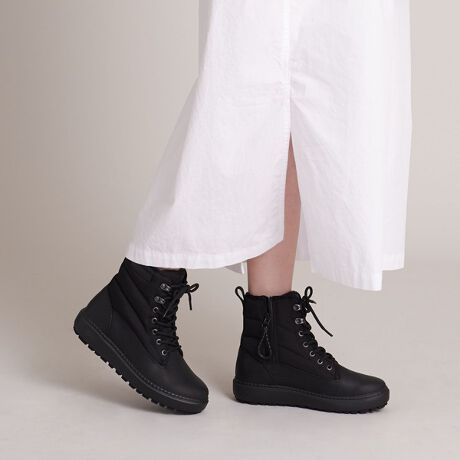 インソールにはクッション性の高いオーソライトを使用し、熱反射保温機能オムニヒートで防寒対策としても活躍。悪天候にも対応可能で、真冬の外出時にも強い味方。ジッパーをサイドに施すことで、手袋をしていても脱ぎ履きがしやすい仕様です。