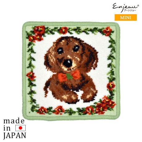 ミニハンカチ 犬柄【ダックスフンド】ダックスフント シェニール織 17cm