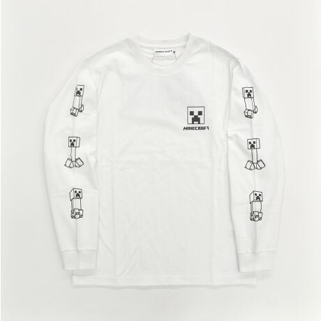 [型番:C5059CT]レトロなドットテイストの3Dブロックが溢れる世界で、自由に探索・採掘し、思い通りの世界を組み上げるサンドボックスゲーム「MINECRAFT」。クリーパー線画ロンTシャツ。素材は天竺になります。