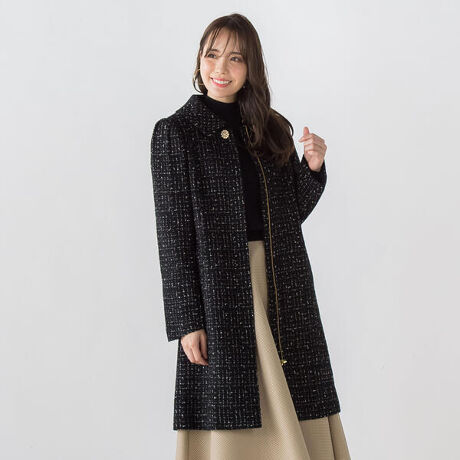 クラシックエレガントな雰囲気を纏えるノーカラーツィードコート。