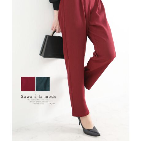 【パンツ】ボトムス ダークグリーン 緑 ボルドー 赤 テーパード ロング ストレート タック 無地
