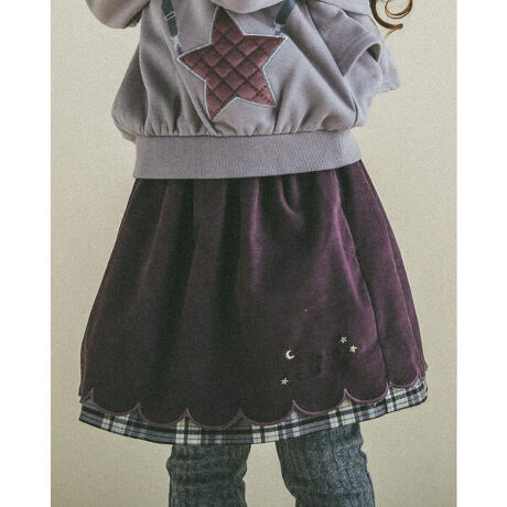 【 ママ想い 】 無地 × チェック コールテン リバーシブル スカート (90〜130cm)