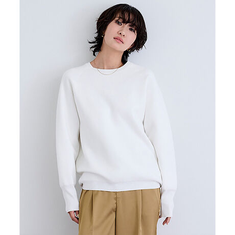 大人カジュアルスタイルにぴったりなスウェット見えするニットトップス。