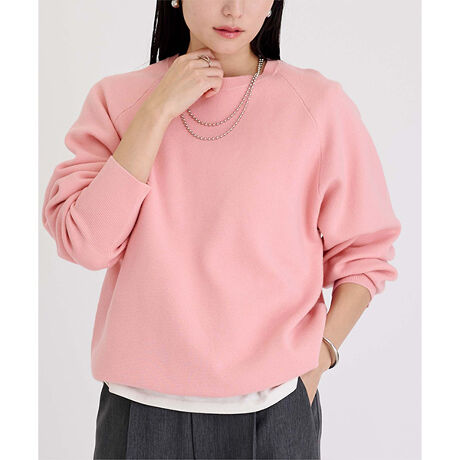 大人カジュアルスタイルにぴったりなスウェット見えするニットトップス。