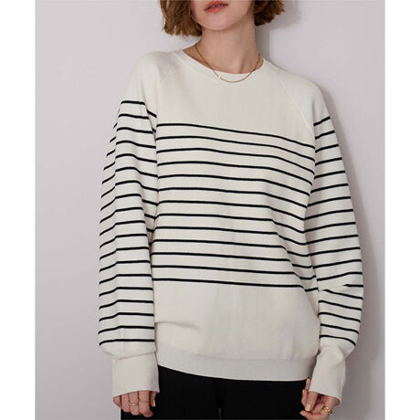 大人カジュアルスタイルにぴったりなスウェット見えするニットトップス。