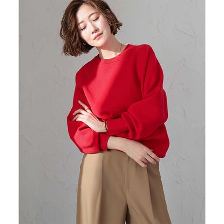 ニットでもハリのある編地で、身体のラインを拾いにくいのも嬉しいポイントです。