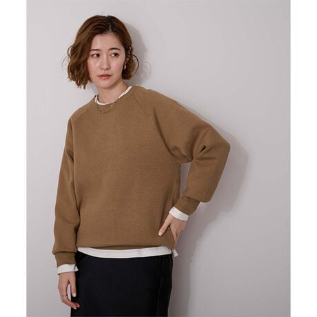 大人カジュアルスタイルにぴったりなスウェット見えするニットトップス。