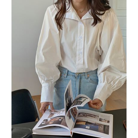 袖巾をたっぷりと取ったボリューム袖とワイドなカフスでシルエットにメリハリをつけ、