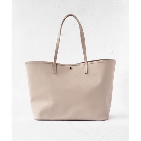 表面にPVCコーティングした、とっても軽いキャンバストート。水をはじきやすくレザー見えするリュクスな素材感が特徴です。ボディーの内側は、表と異なるカラーのベースにアイコンのチェッカークローバー柄をプリント。ハンドルには牛床革を使用し、シンプルな中にもTOCCAらしいほんのりフェミニンで上品なディテールが光ります。A4サイズやPCなど色んな荷物が楽々入る大きさで、肩かけしやすい長めのハンドルなので、通勤用はもちろんマザーバッグとしてもおすすめです。