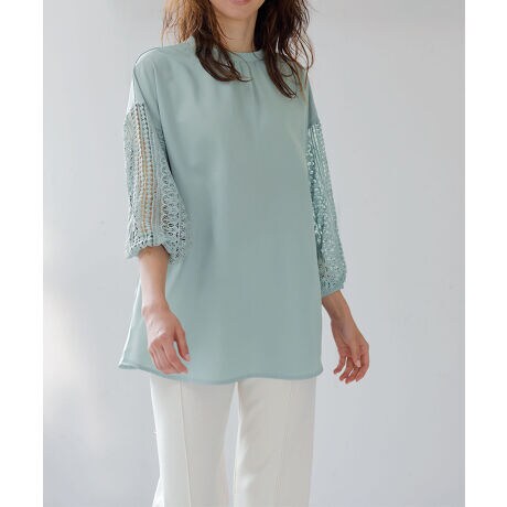 袖口のレース使いとプチハイネックで上品な女らしさを手に入れて袖の豪華なレース使いが華やかなチュニック。