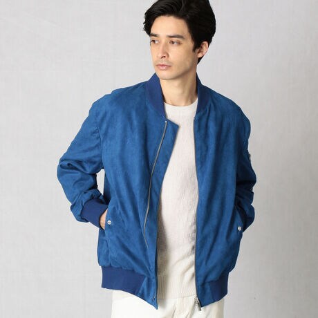 ・石川県能美市で創りあげた軽く滑らかな肌触りの優れた\n フェイクスエード素材を使用しました。\n・発色の良いスエードを鮮やかな色合いに染め上げました。\n・全体的にゆとりを持たせたシルエットのブルゾンです。 \n