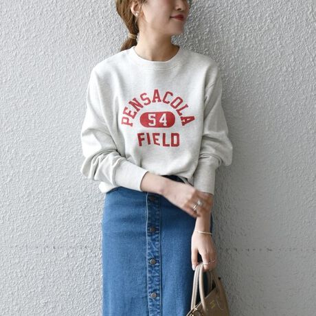 目をひくフロントのカレッジプリントが今の気分にぴったりなカジュアルスウェット。