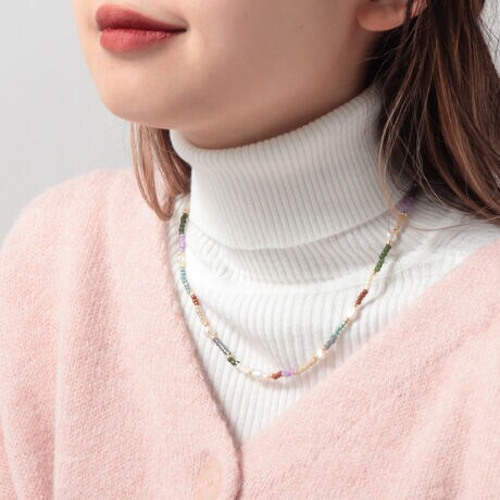 ヴィンテージライクなパール×ビーズの異素材MIXネックレス