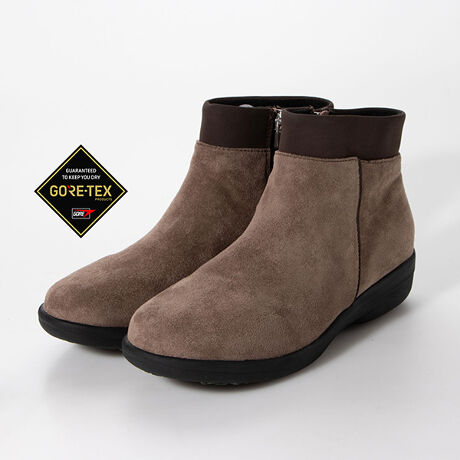 ◇【GORE-TEX】 防水・透湿機能の本格的な機能 ショートブーツ◇ 防水・透湿機能のGORE-TEXファブリクスを使用。水の浸入を防ぐだけではなく、靴内部の蒸れた空気を外に逃がし、足元を常にドライで快適に保つよう設計しています。トラベル・ウォーキングなど、さまざまなライフスタイルのシーンで、雨の日も晴れの日も、いつでも気軽に履ける高機能シューズです。ベーシックなデザインのショートブーツ。素材は生地とスエードコンビの展開で1年を通してお使いいただけるデザインです。1年を通して気持ちよく快適にお使いいただけます。巧妙に設計された波柄のウエーブカップインソールを使用。凸凹が足裏のマッサージ効果も♪EVAソールを採用しラバー面にはハイドロストッパー社製『スクラッチャー』を配置し、氷結面や雪路面のグリップ性に優れているので、雨雪の日濡れた地面での歩行も快適にサポート致します。