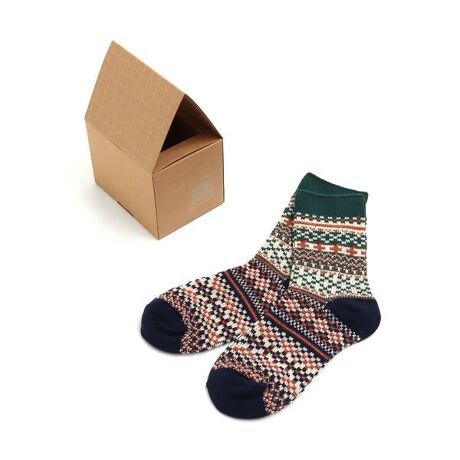 クリスマスっぽい色合いが気に入ったので購入。思ったより薄手でした。洗ったら編み目がキュッと締まって細くなり履き心地は少し窮屈です。