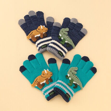 左右で異なる恐竜のサガラワッペンがとってもキュートな5本指手袋です。伸び伸び仕様でつけ心地が良く、デイリー使いにぴったり♪ お洋服だけでなく、手元にも大好きなモチーフをオンして一緒にお出かけができます。洗濯機の使用ができるのもうれしいポイントです。