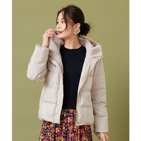 ややマットな生地のタフタにダウンとフェザーを詰めた防寒アウター。コンパクトなシルエットで着ぶくれせず、すっきりとした印象に仕上がります。袖口と裾にはゴムを内蔵し、風が入ってこない仕様に。フード裏には空気感のあるエコファーが付いており、大人のエレガントな雰囲気をプラスしてくれます。フードやポケットに入った合皮パイピングもデザインのポイントに。コンパクトな丈感なのでワンピースやスカートと好相性!カジュアルはもちろん、きれいめにも合わせやすいアイテムです。