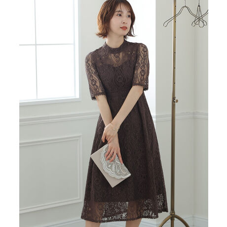 刺繍レースが華やかで可愛いドレスワンピースエレガントな総柄の刺繍レースがとっても上品。