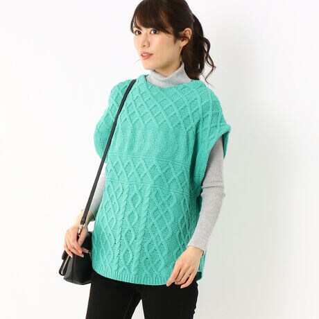 アラン柄とワイドリブのミックスした編地でこなれた、ゆるっと重ねるだけで新鮮なローゲージ印象のベスト。フレンチスリーブ型のハイネックでバランスがよく、いつものコーディネートをアップデートしてくれます。合わせるボトムを選ばずワンピースに重ねて着るのもおすすめです。お手入れ:手洗い店舗へお問い合わせの際は、下記の品番をお申し付け下さい。[品番:04850116]