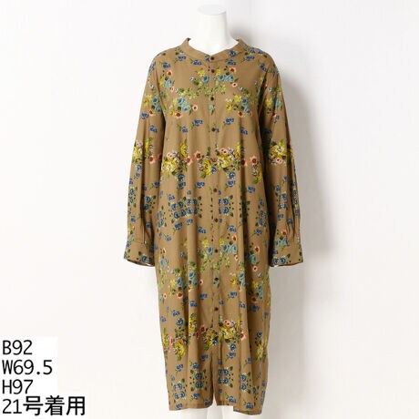 【15〜21号】コットンレーヨンビエラ リフレインレリュームプリント前開きワンピース