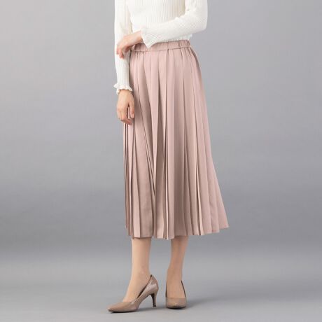 上品な光沢感がフェミニンなワイドプリーツスカート