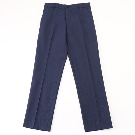 《デザイン》\nマイクロチェック柄を施し、大人っぽくトラッドな雰囲気のパンツ。\nシルエットを見直し、尻・腰周りをすっきりとさせ、ワタリから裾にかけて、細身で直線的なシルエットにしています。\n着心地の良さはもちろん、スタイリッシュなデザイン性にもこだわりました。\n\n《素材》\n適度なハリとコシを持った、セットアップにふさわしい、トロピカル(平織り)素材。\n「トロピカル」とは、軽い着心地になるよう細糸で平織りした、通気性のある春夏向けの毛織物。\n今回は繊細なマイクロチェック柄を取り入れ、上品な印象にしました。\nなめらかなとろみ感のある素材です。\n\n《セットアップ(別売り)》\nジャケット(98-03GY16-202)と合わせて、セットアップとしてもお召しいただけます。\n※在庫がない場合もございますので、予めご了承くださいませ。