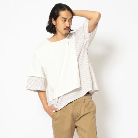インフルエンサー ユウトと UNCUT BOUND The Standard (アンカットバウンド ザ スタンダード)のコラボレーション第一弾。もちろんここでしかお買い求めできない、スペシャルなアイテムです♪無地とストライプをドッキングさせた、特徴がありながらも使い安さを失っていない絶妙なバランス。程よく夏コーデをレベルアップしてくれる素敵なアイテムをぜひお見逃しなく♪■DETAIL・さらっとした肌触りの良いシャツ地をベース・天竺素材の部分レイヤード・半分隠れた、胸ポケット・ビッグシルエット・Sサイズは女性にもオススメ※選択の際はタンブラー乾燥はせずに陰干しでお願い致します。■YUTO MOCHIDA (FASHION DIRECTOR / MODEL)自身のスタイリングをSNSにて発信。セレクトショップやファッションブランドとのコラボ商品を多数手がけ、セレクトショップやブランドのPR、タイアップも多数手がける。
