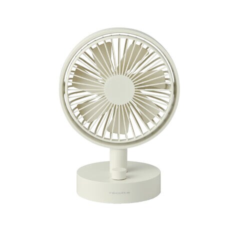 インテリアになじむシンプルでかわいいデザインのUSB充電式コードレス扇風機。