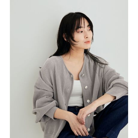 【極上の肌ざわり】リブクルーネックカーディガン -CreamyCotton クリーミーコットン-