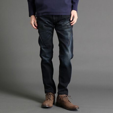 ファスナーポケットとオリジナル牛革パーツをアクセントにした高品質デニム。表地には機能糸(バイロフト)を使用したストレッチのデニム素材を採用。カットソーの様な柔らかい風合いと高いストレッチ性、糸が持つ特徴の調温性・通気性に優れた、快適で爽やかな着心地が特長。洗濯磨耗性にも強く、デニム特有の丈夫さはそのままに洗濯後の収縮はほとんどありません。