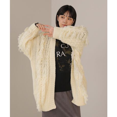 立体感のあるフリンジがお袖にもついているので、動くたびにオシャレムードが高まります。