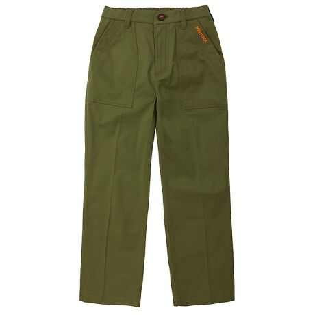 コットンベースにコーデュラが MIX されたベイカーパンツ。ウィメンズはベイカーポケットにワイドシルエットのシンプルな形状で、レングスをロールアップなどで調整できるよう、様々な着合わせを想定したカジュアルパンツ。ジャケット同様、エージング ( 経年変化 ) を楽しめる 1 着。