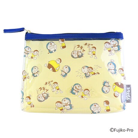 ドラえもんのパターン柄が、使いやすいPVCポーチになりました。マチがあるので化粧品や文具がたっぷり入ります。 (C)Fujiko-Pro