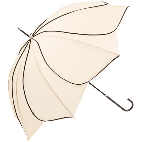 スタイリッシュなカットワークが目を引き、美しいシルエットが特徴的な長傘が登場。紫外線遮蔽率が約80%なので雨傘としてはもちろん、日除け用の傘としても使えて便利。傘生地には、紫外線防止効果のあるポリエステル素材を使用、防水はっ水加工済。持ち手が細く、合皮カラーレザーを使用していて、上品なデザインで手開き式。バイカラーパイピングを施しており、デザイン性が高く、憂鬱な雨の日も楽しくなるアイテム。