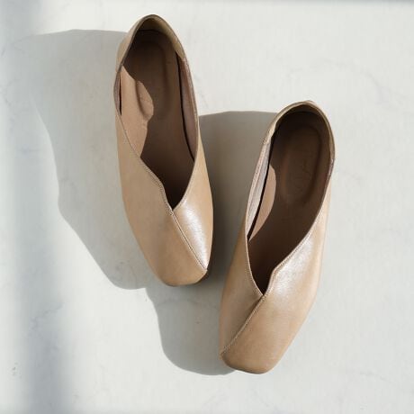 ・スクエアトゥ×Vカットで履くだけで大人なこなれ感を演出。