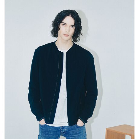 スタイルを問わない着回しの効くブルゾン型をベースに、リブ部分をメッシュ組織で掛け合わせた高級感のあるルックスに仕上がっています。薄手で軽くタイトなシルエットながら伸縮性があり、快適に着用いただけます。