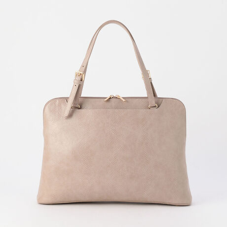 ・淡めのカラーと上品な型押し素材で、オフィスバッグに最適