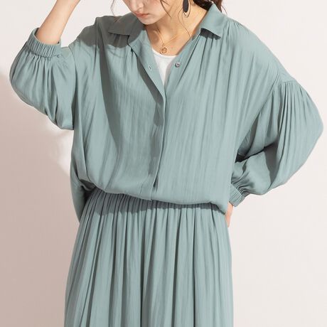 ■しっとりとした落ち感&ギャザーデザインが美しい、とろみ素材の上品シャツブラウス■