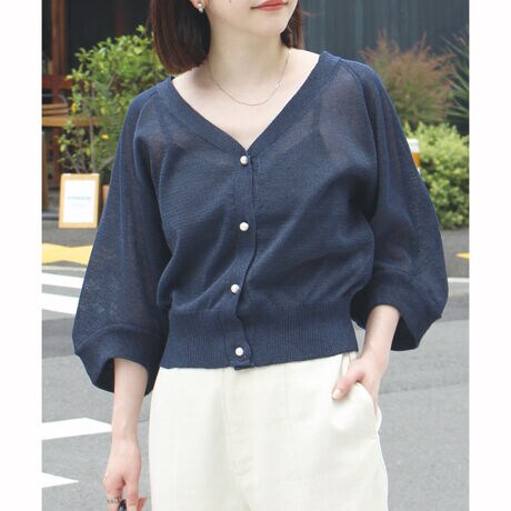 [LL/3L/4L][洗える]パールボタンシアーカーデ
