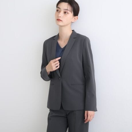 細目のテーラード衿がスタイリッシュな印象の1つ釦のテーラードジャケットです。