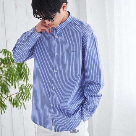 ストライプもきれいに映えて、前を開けても閉めてもおしゃれに着られるシャツ!