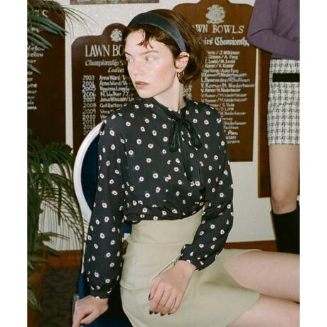 大きめの変形襟が一気に今年らしさをプラスしてくれるデザインブラウス小ぶりの花柄で主張しすぎず、合わせやすいヴィンテージライクなカラーもREDYAZELらしいポイント。取り外し可能で華奢なデザインのリボンタイは繊細な印象を与えてくれる。ほどよくゆったりしたシルエットも抜け感を演出し女性らしい印象に◎【styling】ウエストをボトムスにインして着用することでこなれ感のあるスタイリングに◎花柄のデザインでも、小花プリントなのでカジュアルにも着用いただけます。--------------------------透け感:なし裏地:なし伸縮性:なし生地の厚さ:普通---------------------------