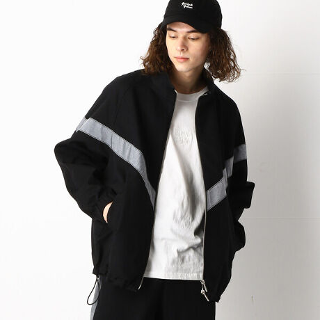 なトレーニングウェアをデザインモチーフにしたデニムジャンパーです。