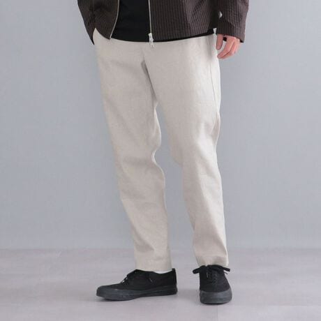 ヒップ部はゆとりを持たせ、裾に向かって細くなるテーパード仕様。ゆるくなり過ぎず、それでいて履き心地も良いパンツとなっております。