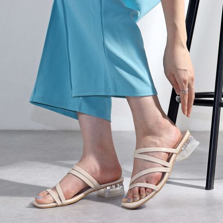 シルエットと履き心地を追求した4連コードクリアヒールサンダル。