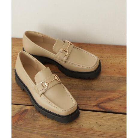 トレンドのトラックソールを施したローファー。いつものローファーより少し高さのあるボリュームソールと上品なビット付デザインで新鮮なスタイルに。パンツスタイルはもちろん、ワンピースとも馴じみやすいデザインです。高さをだしたソール使いなので、脚長効果を期待できるのもポイントです。
