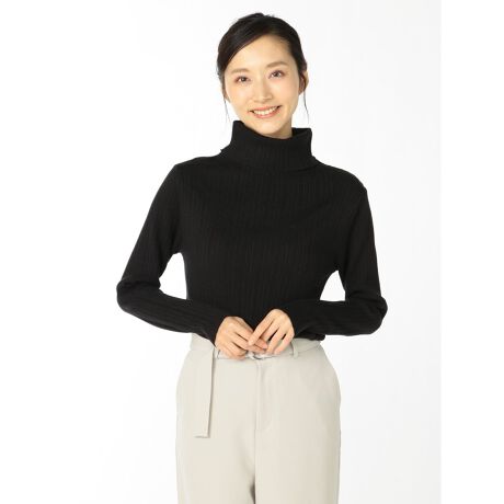 やわもちランダムリブ タートルネック ニットプルオーバー