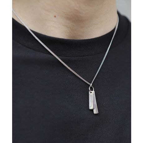 長さやカラーに変化を付けたダブルバーのトップに、シンプルな細身のチェーンを組み合わせたネックレス。 後ろのアジャスターで長さを調節が可能。