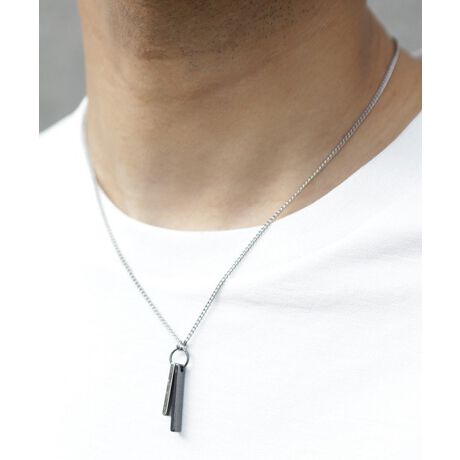 長さやカラーに変化を付けたダブルバーのトップに、シンプルな細身のチェーンを組み合わせたネックレス。 後ろのアジャスターで長さを調節が可能。